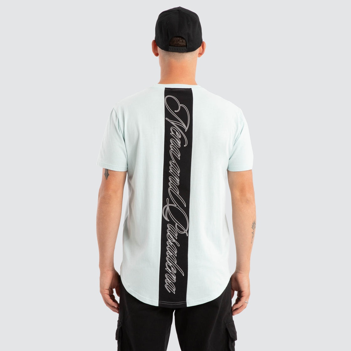 The Juncture Dual Curved Tee in Charcoal offers a slim fit in the body and arms, extending to a long length that ends with a stylish curved hem. Made from a cotton blend, enzyme silicon soft wash.